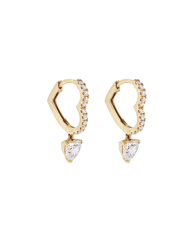 Part of the AMOUR. Collection, designed by Miranda Kerr and exclusive to Michael Hill. Crafted in 10kt yellow gold, these drop earrings feature 1.19 carat total weight laboratory-grown diamonds, a modern take on the classic heart motif, and Miranda’s signature stamp. A heart-shaped hoop and drop design offering fluid movement and brilliance.