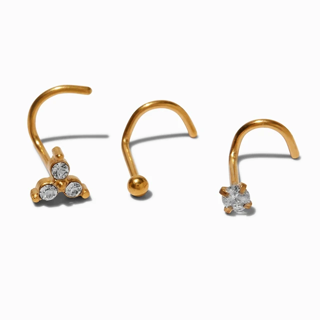 20G Gold-tone Titanium Cubic Zirconia Geometric Nose Studs - 3 Pack