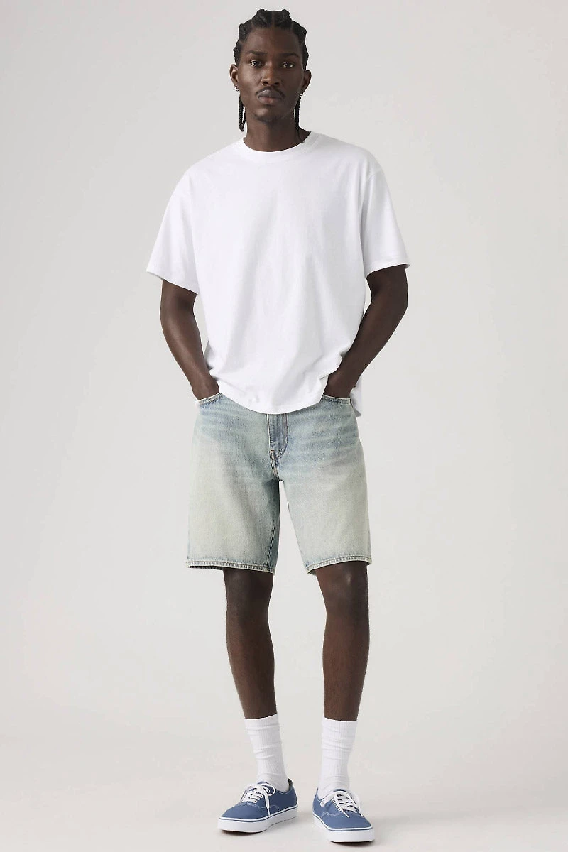 Get loose. Stay loose. Levi's are setting trends, and your favorite '90s era is back with 468 Loose Shorts that hit right at the waist, feature a wide leg opening, and have a mid-length cut.  Men's loose shorts Loose through the seat and thigh Mid rise - sits at your waist 9" insem 11,5" front rise 23.5" leg opening Hits just around the knee Non stretch denim 100% cotton Model is wearing a size 31