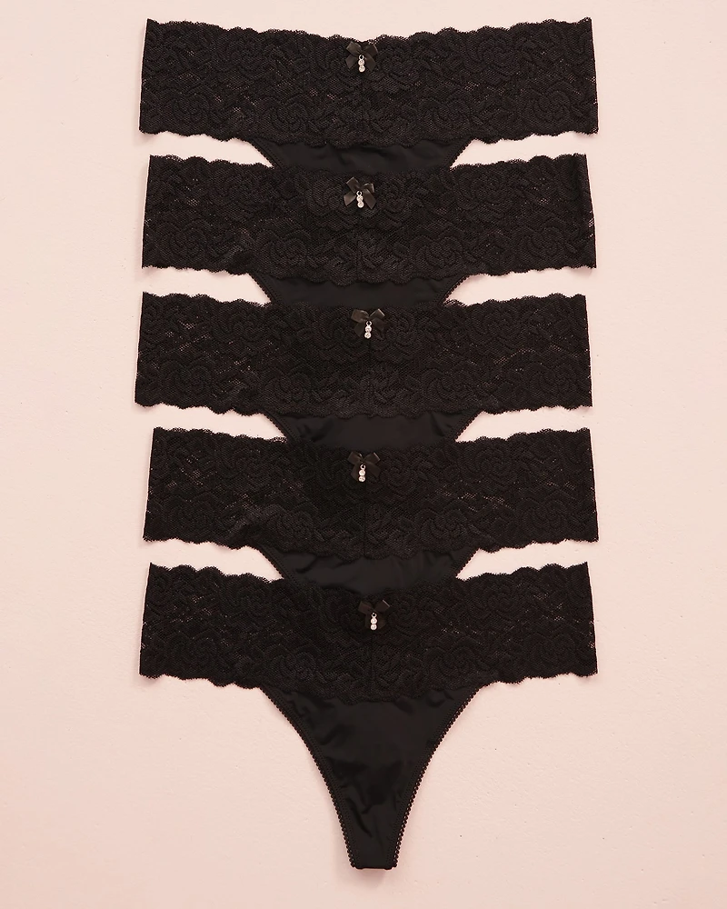 5-Pack Microfiber and Wide Lace Band Thong Panty