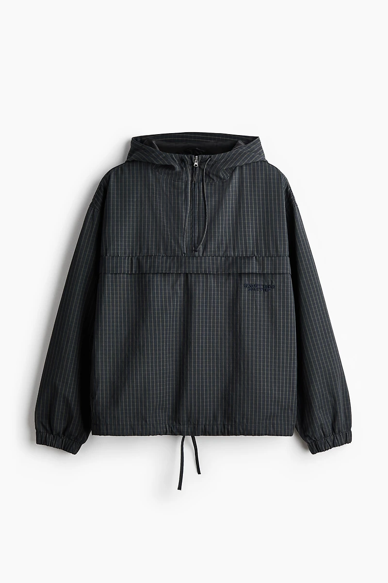 Anorak in cotton twill. Drawstring hood, stand-up collar, and half-zip. Dropped shoulders, long sleeves with covered elastic at cuffs, and a drawstring at hem. Lined.