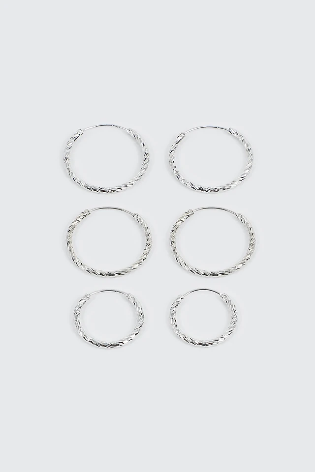 Ardene 3-Pack Textured Hoop Earrings in Silver | Stainless Steel
