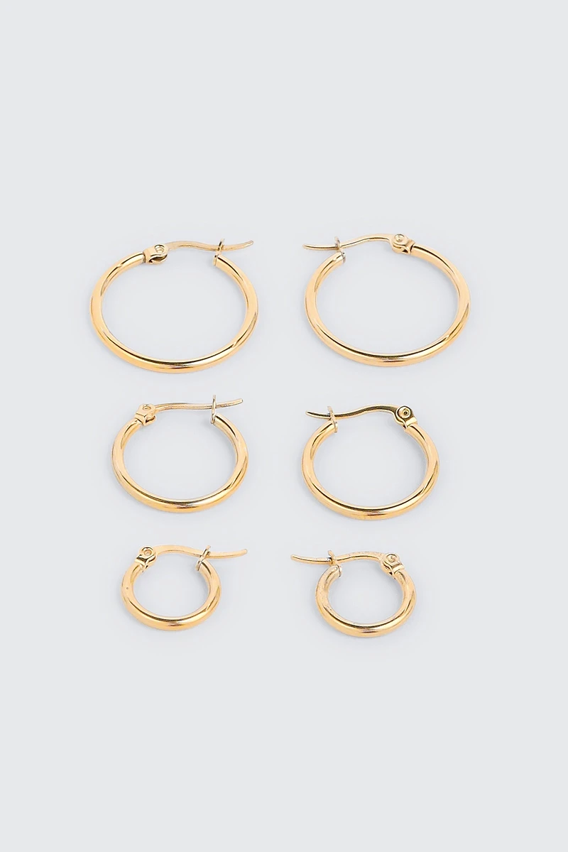 Ardene 3-Pack Stainless Steel Hoop Earrings in Gold