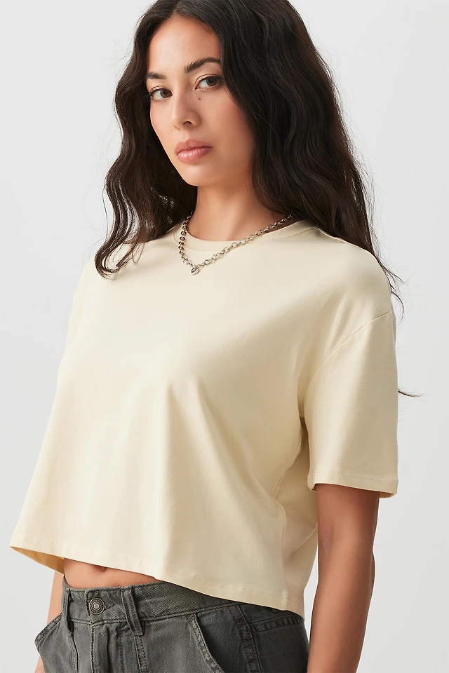 Ardene Basic Organic Cotton Boxy T-Shirt in Light Yellow | Size Large | Cotton/Elastane | Eco-Conscious