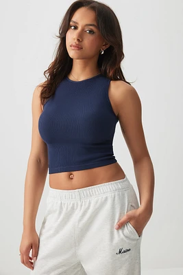 Exclusive piece from our Basic collection. Ultra-cropped tank top in ribbed seamless knit. High neck Fitted 92% nylon, 8% spandex Model is wearing size S | Ardene Basic Seamless High-Neck Tank in Medium Blue | Size Small | Nylon/Spandex
