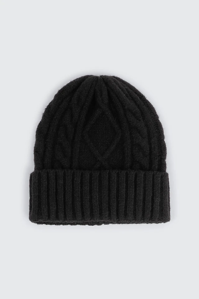 Ardene Cable Knit Beanie in Black | Nylon/Spandex