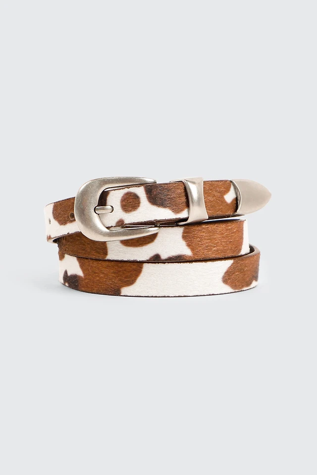 Ardene Cow Print Belt in Brown | Size Small | Faux Leather