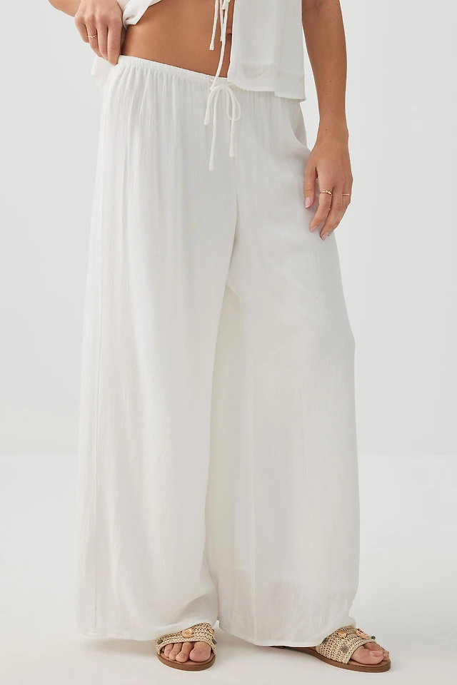Ardene Crinkled Mid Rise Flowy Pants in White | Size | Polyester/Rayon
