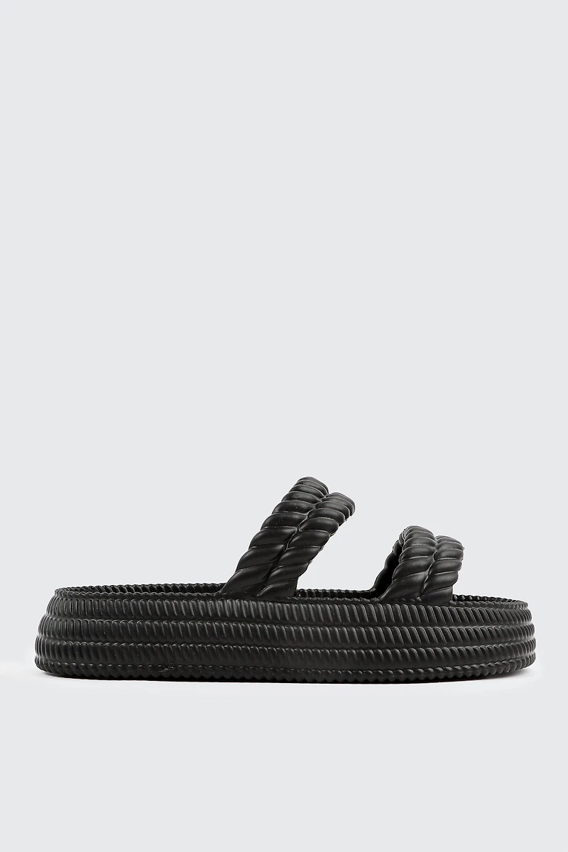 Slide sandals. Lightweight Water-resistant Braided straps EVA construction | Ardene Double Braided Strap Slide Sandals in Black | Size 6