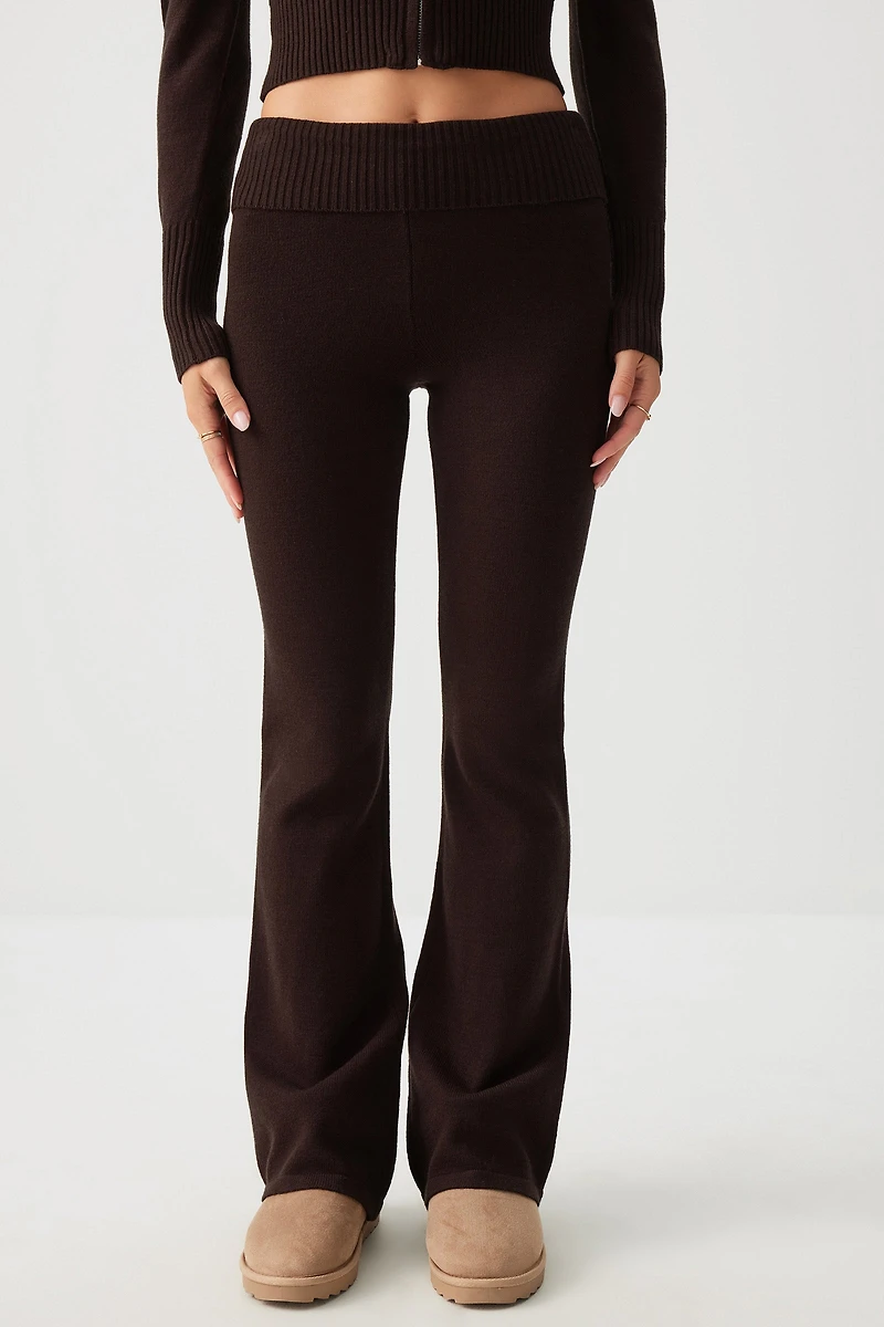 Ardene Fold Over Flare Leg Pants in Brown | Size | Polyester/Nylon/Viscose