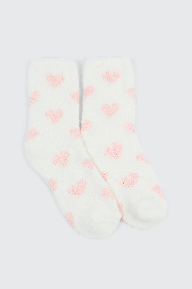 Ardene Heart Cozy Socks in White | Polyester/Spandex