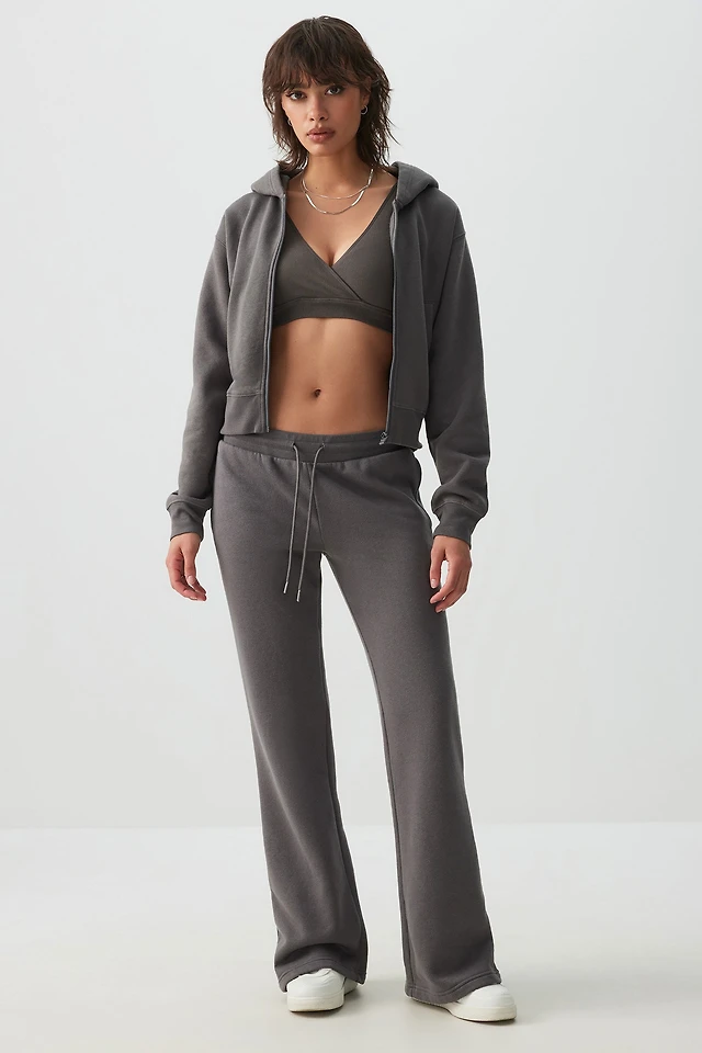 Ardene MADESOFT Fleece Low Rise Flare Sweatpants in Saltstone Grey | Size XL | Polyester/Cotton