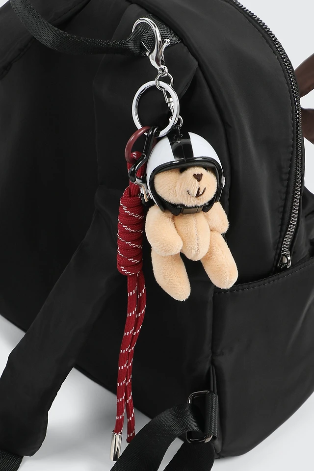 Ardene Plushie Bear Keychain with Charms in Beige