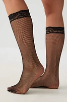 Pair of mesh demi-crew socks. Trendy and comfortable Lace trim Size 5-990% nylon, 10% spandex | Ardene Sheer Lace Trim Demi Crew Socks in Black | Nylon/Spandex