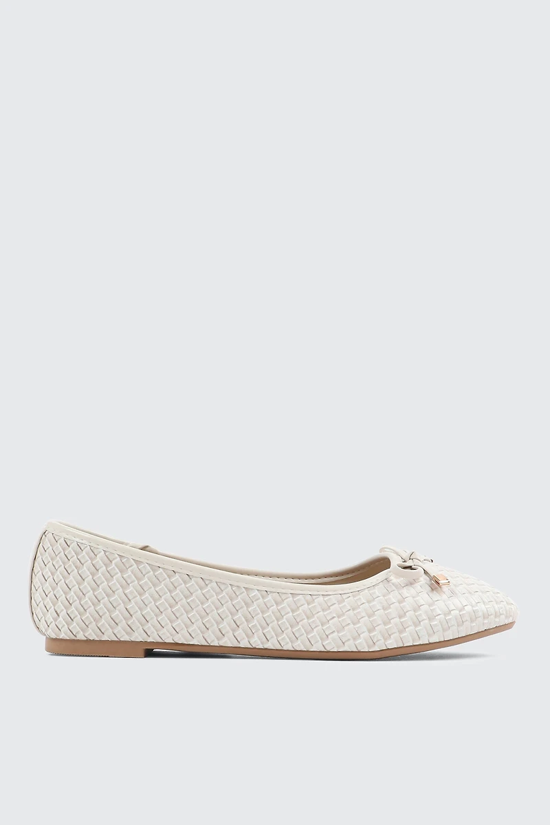 Ardene Textured Ballet Flats in Beige | Size | Faux Leather
