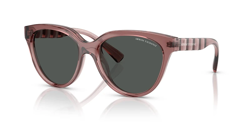 Elevate your style with the Armani Exchange AX4148SU sunglasses. The phantos frames, crafted from nylon and propionate, blend retro inspiration with a chic, rounded silhouette. A vibrant violet front adds a striking touch, while the grey lenses offer a classic finish. Injected temples feature a mesmerizing wave texture that creates a subtle color shift within the transparent design. Perfectly versatile, these full-rim sunglasses exude youthful charm and effortless sophistication.