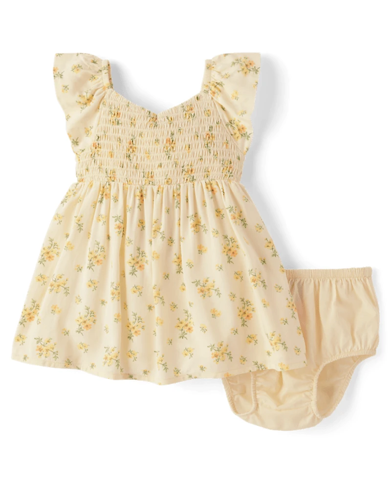Baby Girls Floral Smocked Flutter Dress