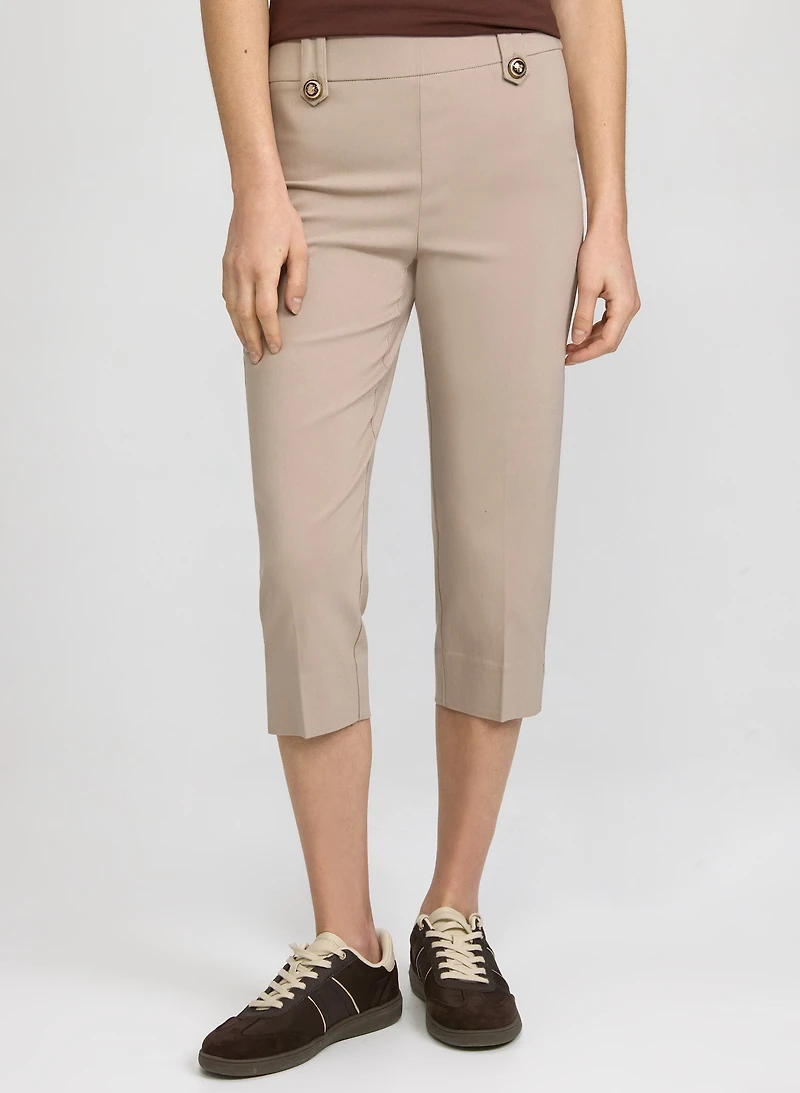 Our bengaline pull-on capris strike the perfect balance between casual ease and polished style, finished with distinctive detailing. Style with a floral blouse to add a soft, feminine touch.Mid risePull-on styleGold-tone button detailing at waistband Belt loopsVented cuffsBengalineInseam: 20"