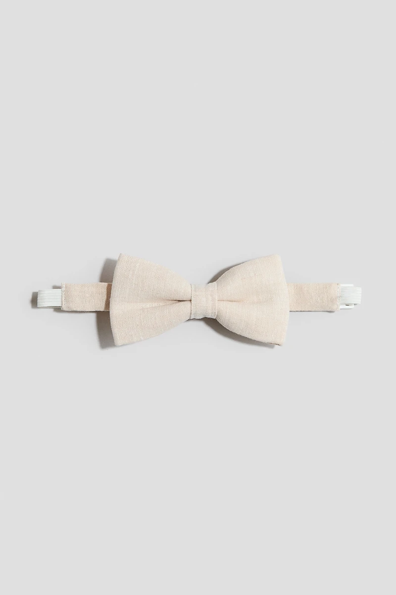 Pre-tied bow tie in woven fabric. Adjustable elastic strap and a plastic fastener at back.