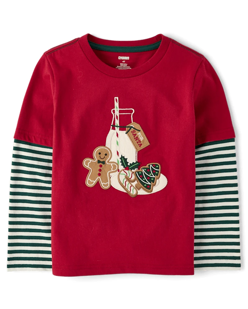 Boys Embroidered Cookies Layered Top - Royal Christmas