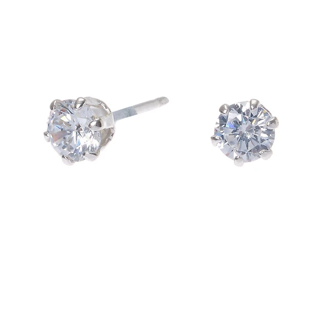 C LUXE by Claire's Sterling Silver Cubic Zirconia 4mm Round Stud Earrings