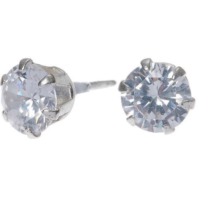 C LUXE by Claire's Sterling Silver Cubic Zirconia 6mm Round Stud Earrings