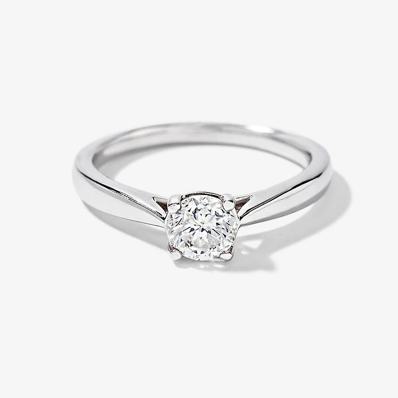 Elevate your love story with this timeless Canadian diamond engagement ring. Finely crafted in 14K white gold, this lovely ring features a round 0.50 carat Canadian diamond at its centre. Let this elegant engagement ring be your shining symbol of your everlasting love story.