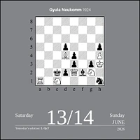 The ideal gift for chess players of every level! Challenge yourself with problems of varying difficulty by the week, every day of the year—chosen specially for the calendar by the editors of American Chess Magazine, and the answer to each puzzle is printed on the following page. Helpful introductory guide to chess puzzles for the newcomer. Date and player information provided for each puzzle, for the chess enthusiast. Answers to each puzzle appear in chess notation on the following page. Tear-off pages (blank on reverse). Day/date reference on each page. Official major world holidays. Notes page in the back of the calendar. Recyclable plastic easel backer for desk or tabletop display. Product Information:Dimensions: 5.38"H x 5.38"W x 1.4"DBinding Style: AdhesiveCalendar Start Date: January 2026Time Span: 365 Days (Box) Single Day Layout with Sat/Sun Weekend PagePaper Source: FSCPackaging: Box - Recycled Cardboard Wafer SealInk Type: Soy-BasedCreative Artist: Additional Features:Contains Canadian Stat HolidayDoes Not Contain Lunar Cycle More Info: Publisher: Rizzoli Universe Item ID: 9780789348036 Language: English Country of Origin: CN