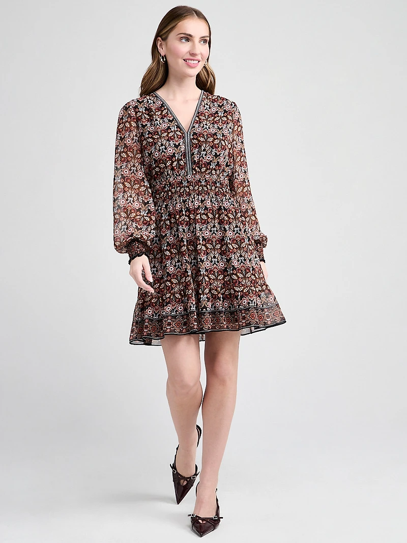 Chiffon Smocked Waist Mini Dress