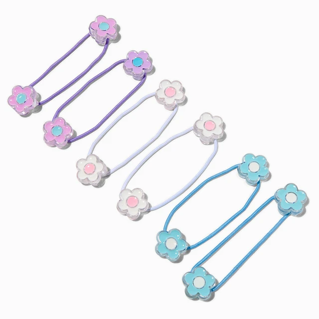 Claire's Club Pastel Flower Charm Hair Ties - 6 Pack