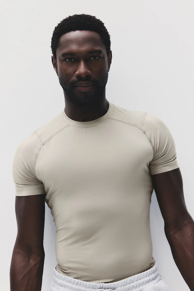 Sports T-shirt in functional fabric made with DryMove™ to wick away moisture from skin and keep you comfortably dry while moving. Round neck, raglan sleeves, and non-chafing flatlock seams for added comfort and increased freedom of movement. Compression fit with a snug design to support muscles and enhance performance during training.