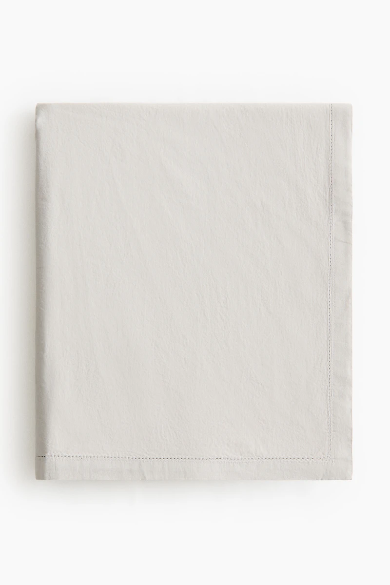 Tablecloth in cotton canvas with hemstitch detailing at edges. 1 in. hem. Thread count 320.