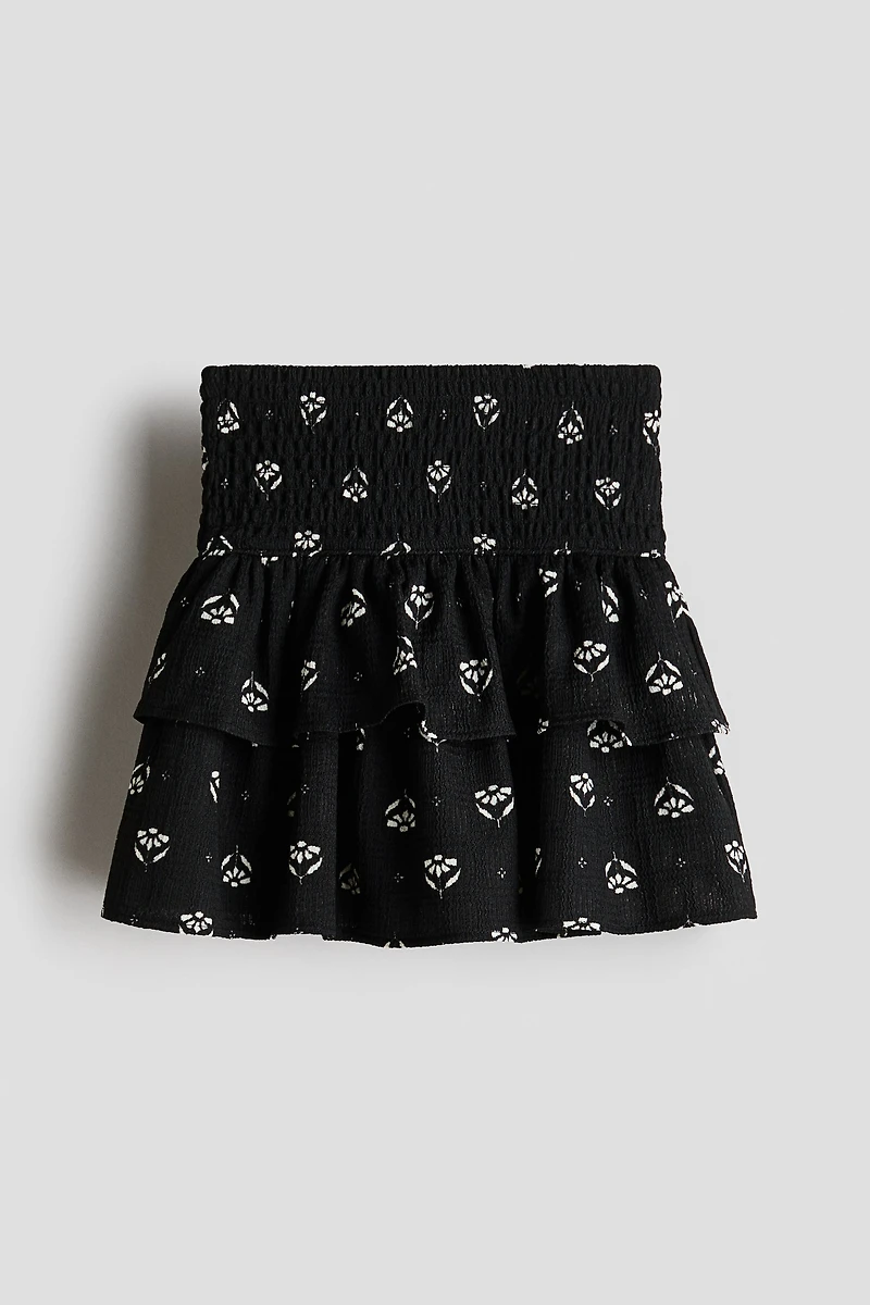 Tiered skirt in crinkled jersey with a smocked waistband.