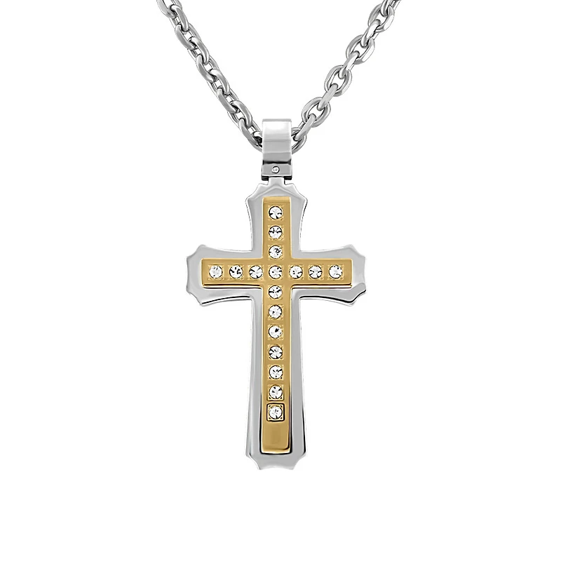 Cross Pendant with Cubic Zirconia in Stainless Steel with Chain