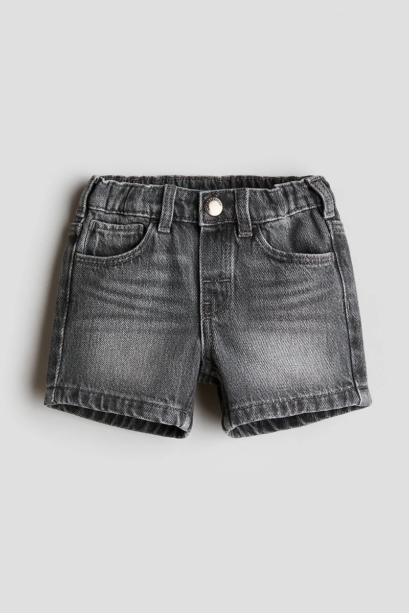 H&M Adorables. 5-pocket shorts in soft, cotton-blend denim. Adjustable, elasticized waistband and mock fly with snap fastener. The H&M Adorables collection is a curated selection of high-comfort, quality pieces with a timeless appeal.