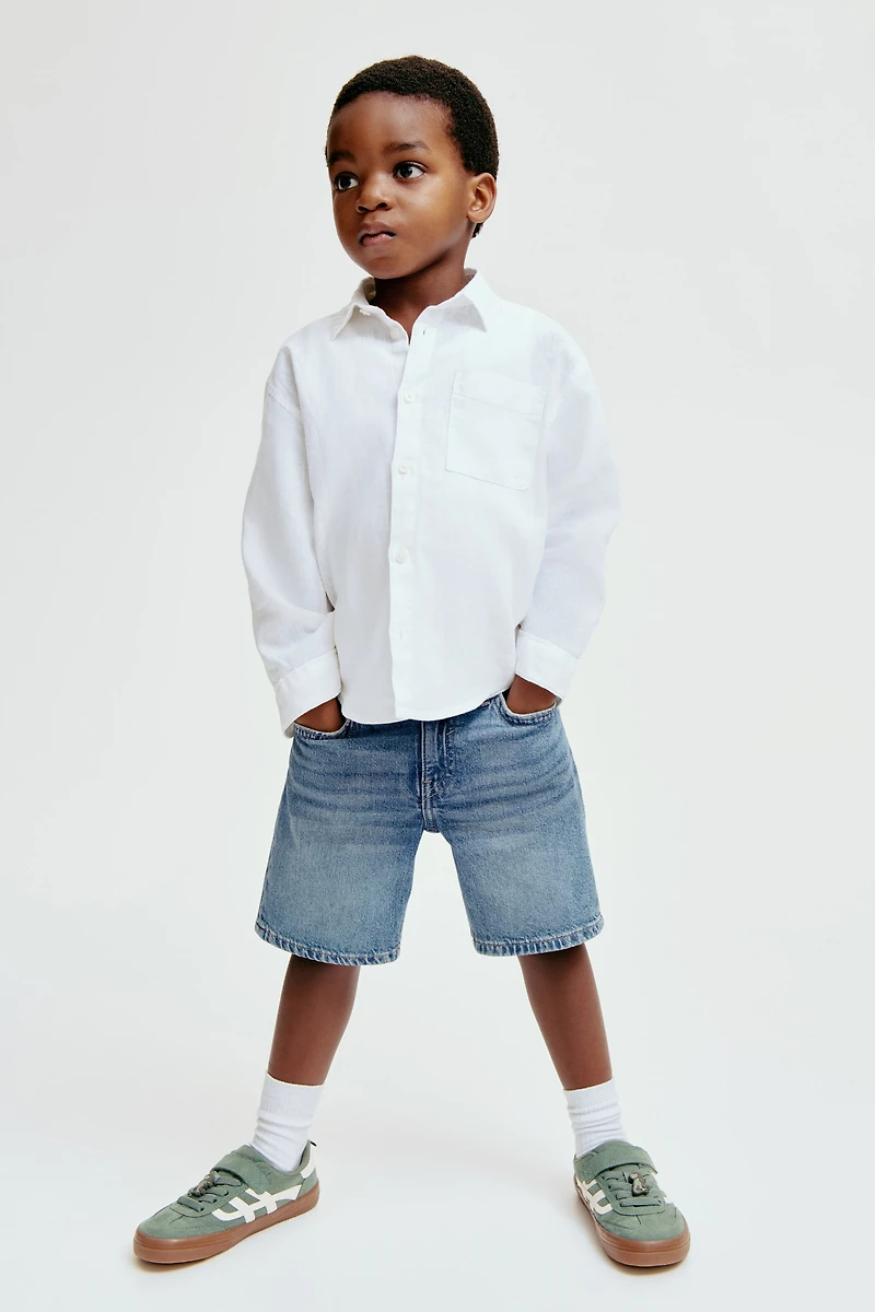 5-pocket shorts in soft cotton denim with gentle stretch for good comfort. Adjustable elastic at waistband and zip fly with a snap fastener.