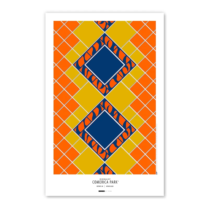 Detroit Tigers Comerica Park 11'' x 17'' Minimalist Stadium Poster Art Print