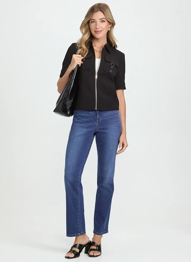 Elbow Sleeve Zip Jacket & Straight-Leg Jeans