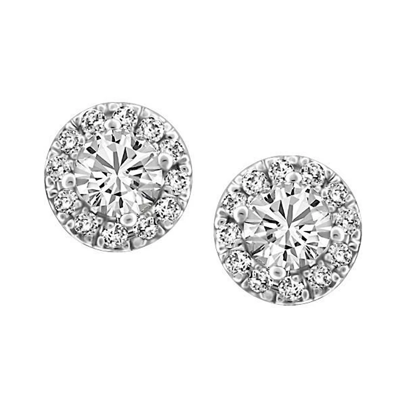 Fire of the North Halo Stud Earrings with 1.00 Carat TW of Diamonds in 14kt White Gold