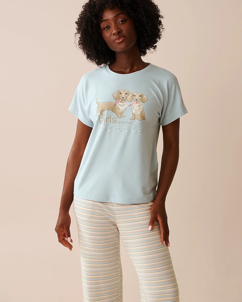 This sweater-knit tee is where comfort meets whimsy. With delicate blooms, little steaming coffee cups and cute dachshunds, each print brings its own dash of charm. Pair it with our matching bottoms for lazy days and cozy nights when stepping out feels totally overrated.