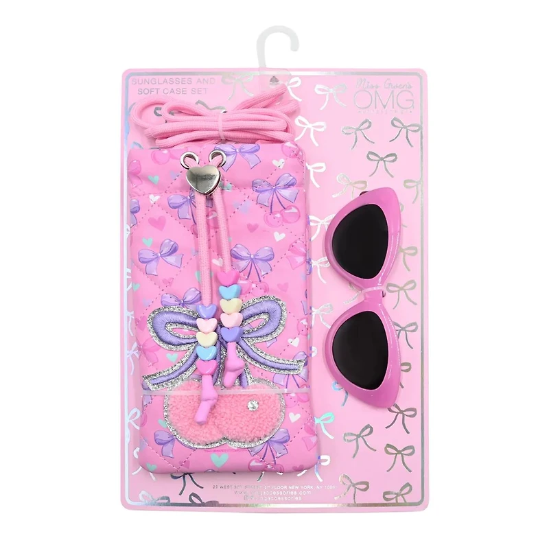 Add a playful touch to sunny days with the Girls' Cherry Case and Bubblegum Sunglasses from OMG Accessories. This fun accessory set offers 100% UV protection, making it perfect for family outings, park adventures, or sunny weekend events. The cherry case with drawstring closure keeps the sunglasses safe and stylish, ensuring your little one is ready for any bright occasion.