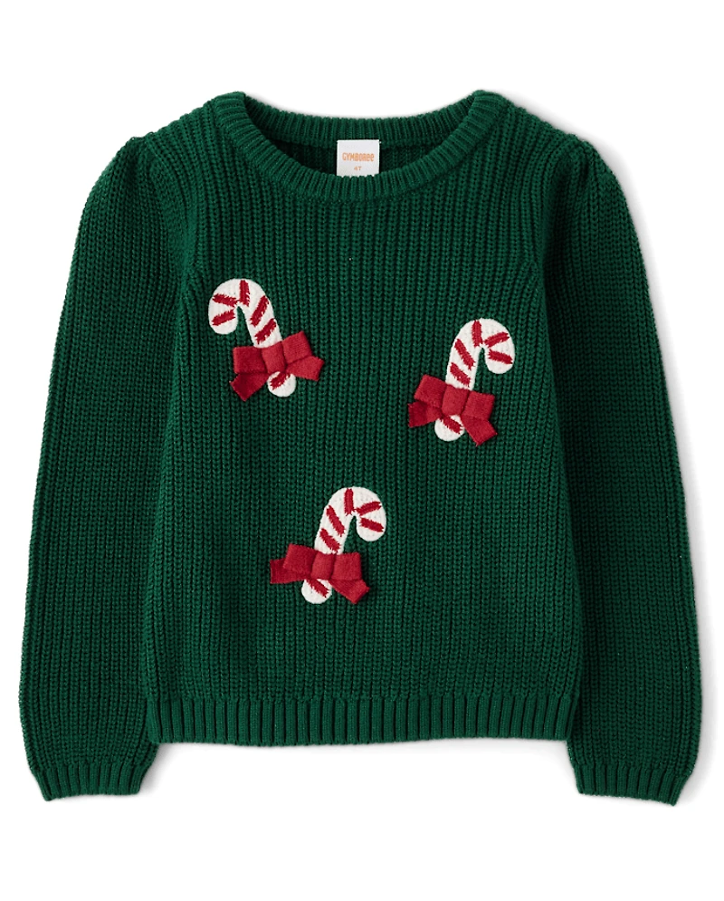 Girls Crochet Candy Cane Shaker Stitch Sweater - Royal Christmas