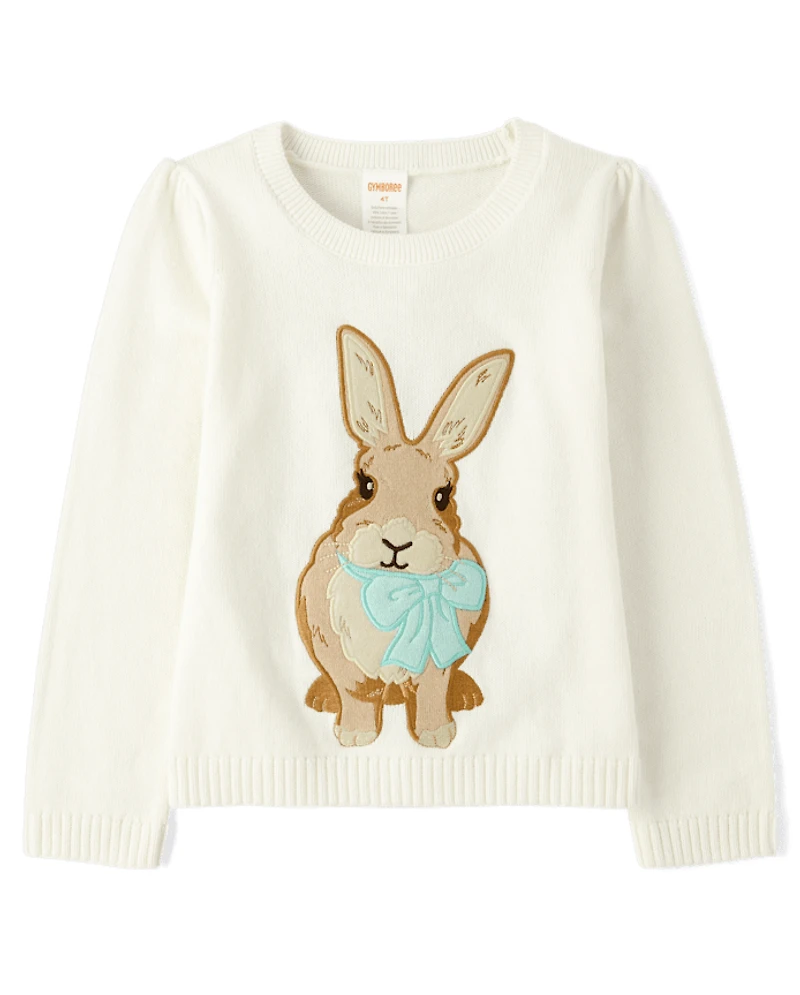 Girls Embroidered Bunny Sweater - Spring Celebrations