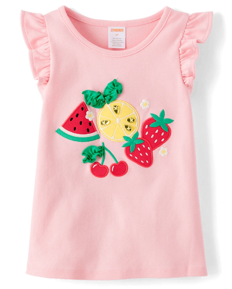 Girls Embroidered Graphic Ruffle Top - Little Essentials