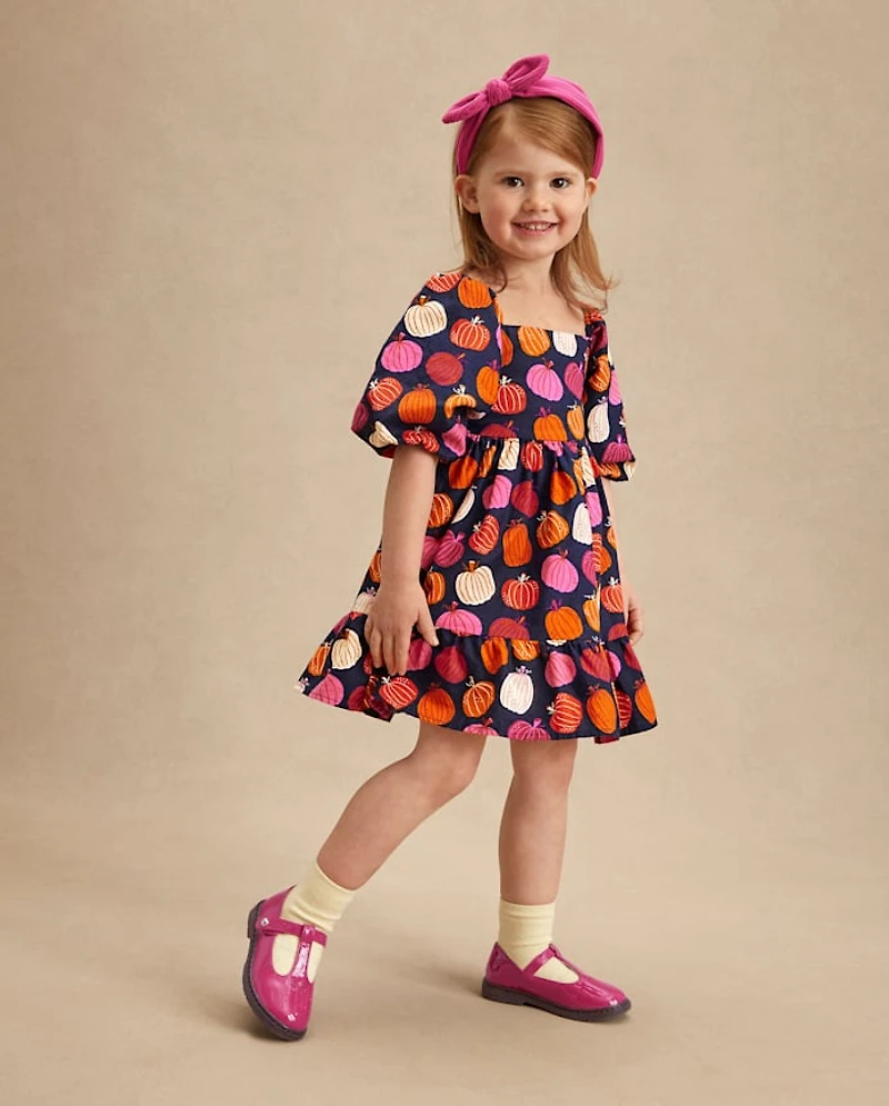 Girls Pumpkin Flannel Ruffle Dress - Fall Celebrations