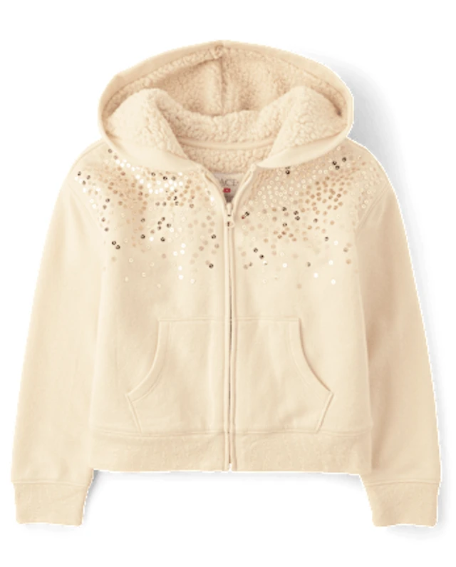 Girls Sequin Fleece Sherpa Lined Zip Up Hoodie
