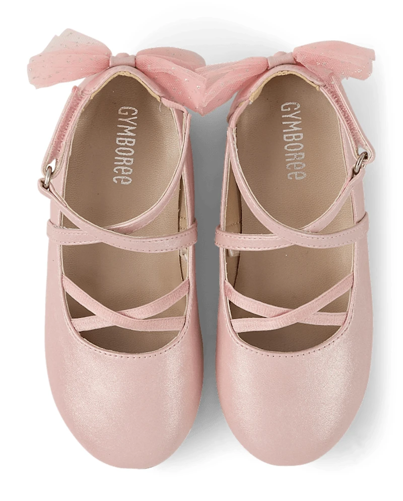Girls Shimmer Bow Ballet Flats - On Pointe