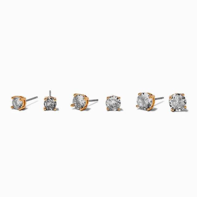 Gold-tone Cubic Zirconia 5mm, 6mm, & 7mm Round Stud Earrings - 3 Pack