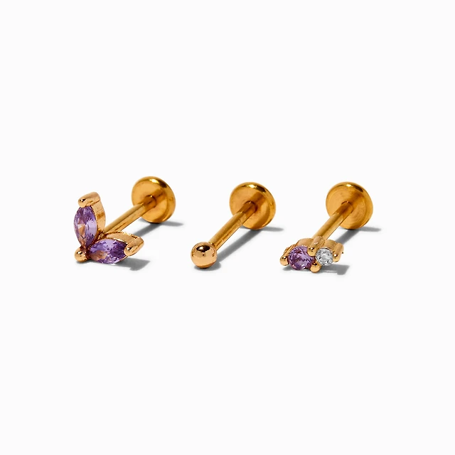 Gold-tone Stainless Steel Purple 18G Threadless Tragus Earring - 3 Pack