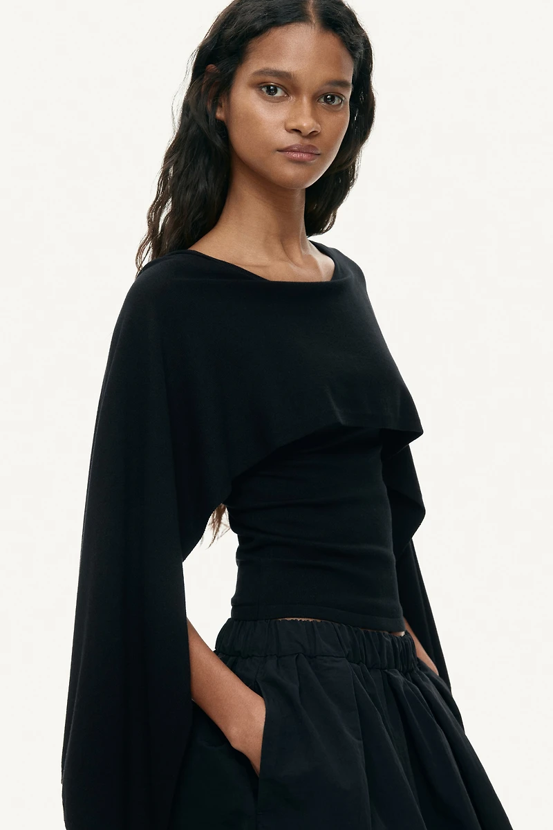 Haut ajusté en fin tricot de viscose mélangée. Modèle sans manches à encolure ronde, recouvert d'un haut court à manches longues d'aspect cape.